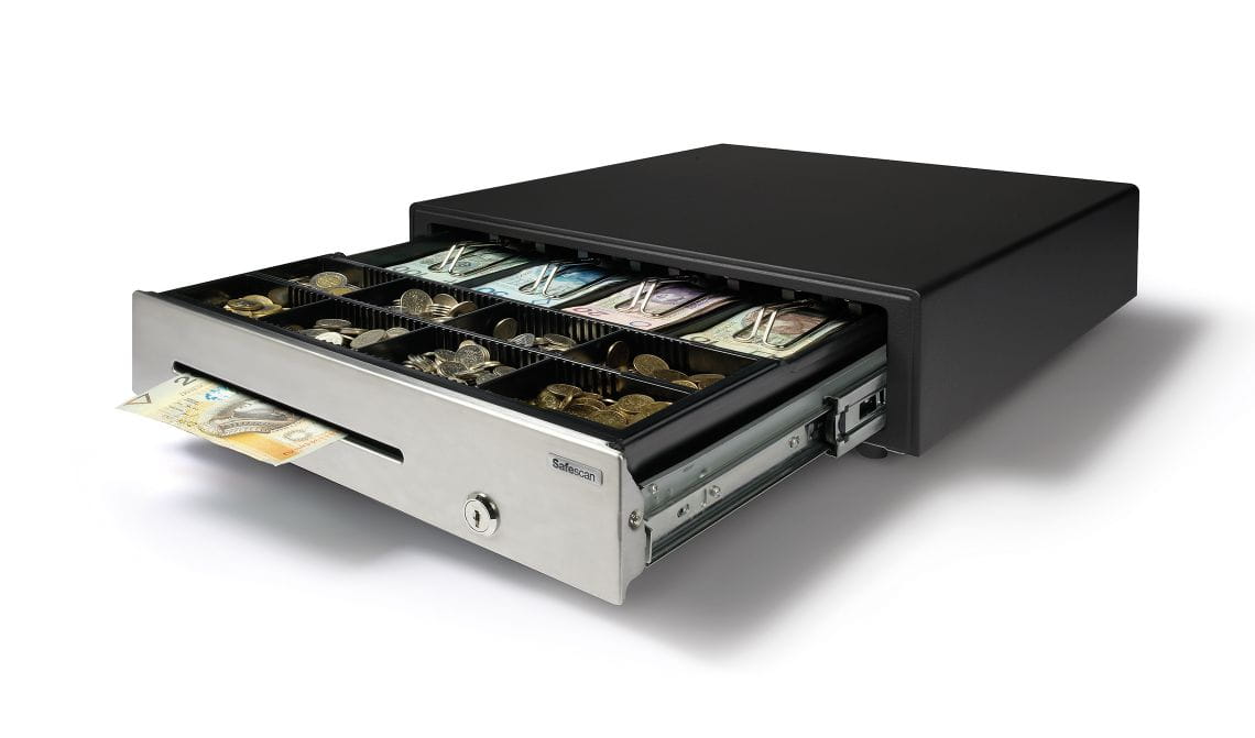 Oto szuflada kasowa „heavy duty”, która świetnie sprawdza się w miejscach o dużej sprzedaży, na przykład w barach, restauracjach czy stacjach benzynowych. Safescan HD-4141S ma metalową obudowę, mocne, teleskopowe prowadnice z łożyskami kulkowymi oraz wkład z pcv z metalowymi dociskaczami banknotów; testy potwierdziły jej wytrzymałość na co najmniej 2 miliony cykli otwierania i zamykania.