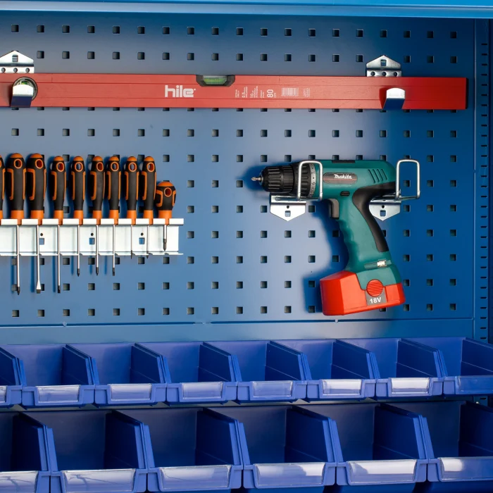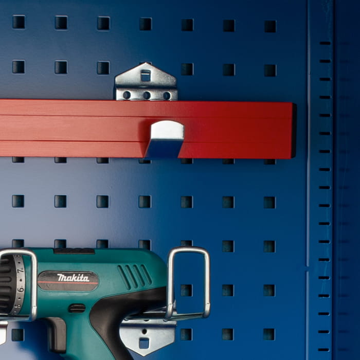 Hak zaokrąglony może służyć do powieszenia niemal wszystkich przedmiotów, a jego kształt zabezpiecza przed zsuwaniem się umieszczonych akcesoriów. Dwa haki można zaczepić o perforowaną ścianę w dowolnej odległości, co daje możliwość powieszenia na nich narzędzi o każdej długości, które wymagają wsparcia więcej niż jednego wieszaka. Hak powstał z ocynkowanej stali, jest więc wytrzymały i nie koroduje. Można go zawiesić w szafach warsztatowych BRUNO, DAREK i SZYMON.