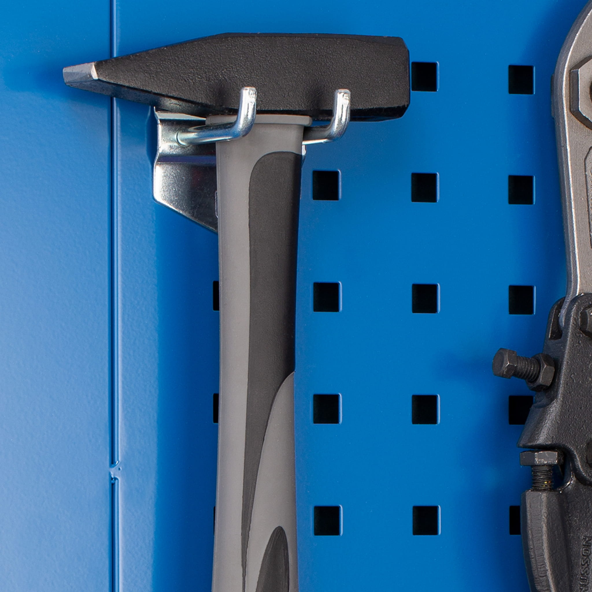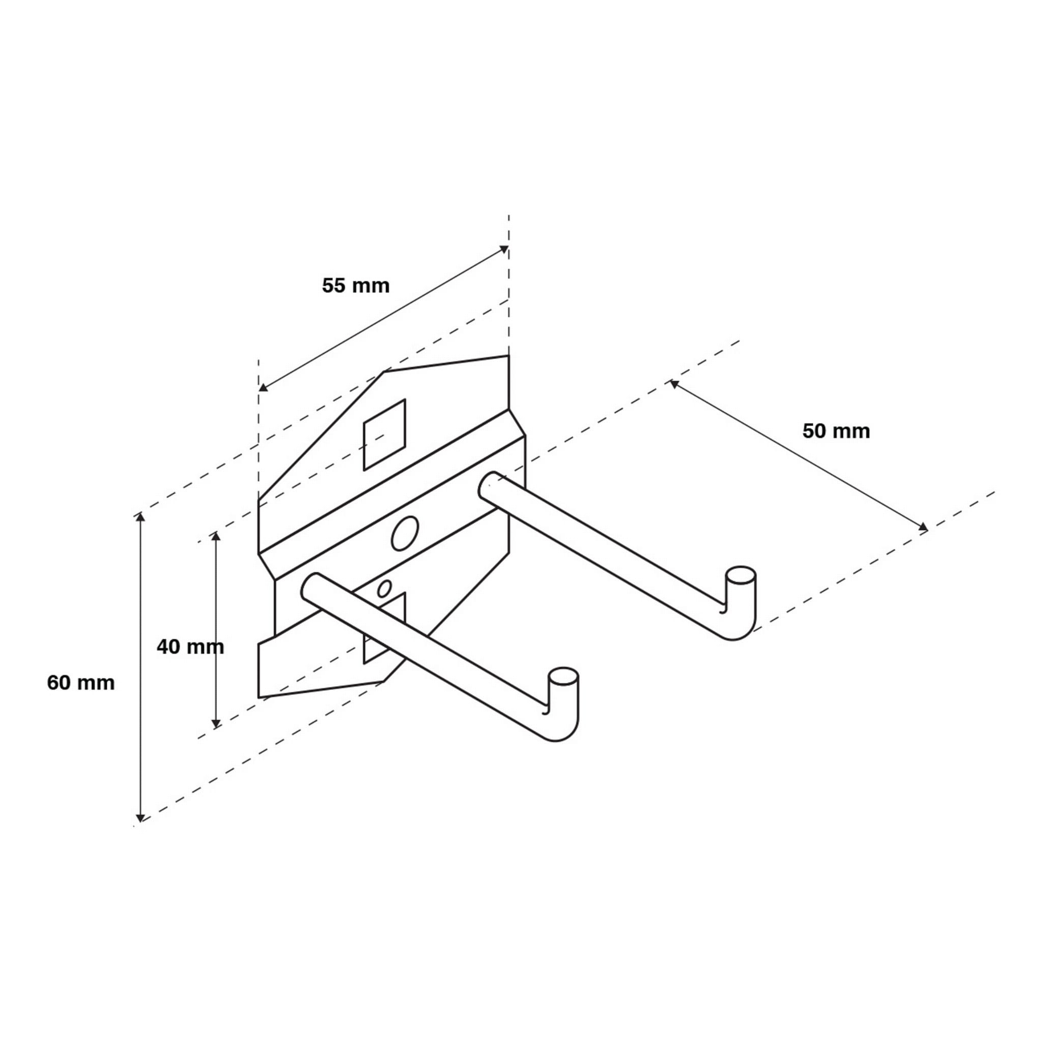 Hak podwójny o długości 50 mm to doskonały sposób na utrzymanie w zasięgu ręki akcesoriów o większych gabarytach i dużej wadze, które potrzebują szerszego podparcia. Hak zapewni im stabilne oparcie i określone miejsce w szafie, dzięki czemu będą zawsze łatwo dostępne. Można go wykorzystać w szafach warsztatowych BRUNO, DAREK i SZYMON. Nie koroduje oraz jest wytrzymały, gdyż powstał z ocynkowanej stali.