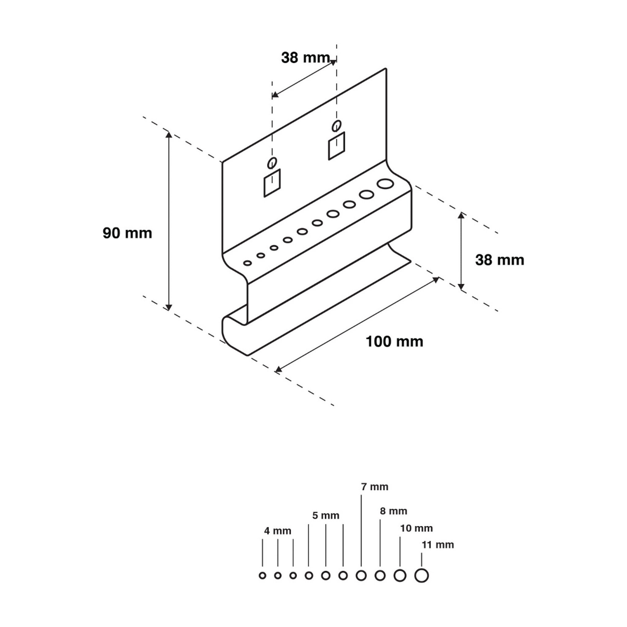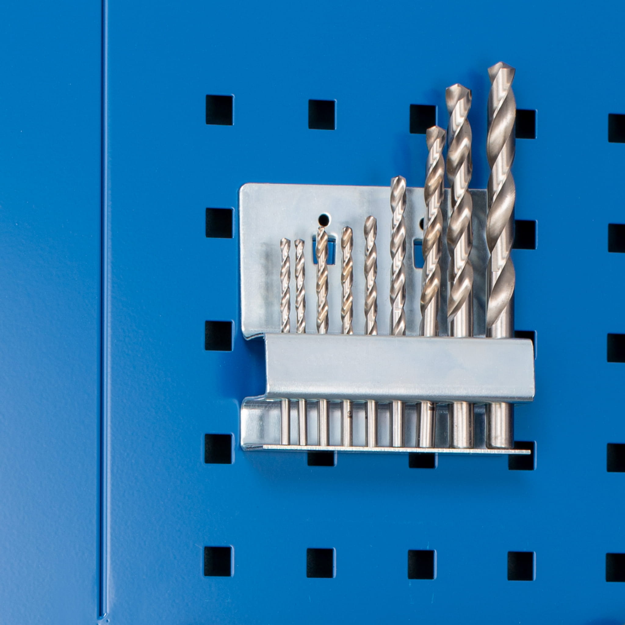 Praktyczny uchwyt pozwoli na umieszczenie w jednym miejscu aż dziesięciu kluczy imbusowych i akcesoriów o podobnym kształcie. Dzięki temu pozostaną one dostępne na wyciągnięcie ręki, a to znacznie ułatwi codzienne użytkowanie. Uchwyt jest bardzo wytrzymały, a wykonanie z ocynkowanej stali zapewnia mu odporność na korozję. Można go zawiesić w szafach warsztatowych BRUNO, DAREK oraz SZYMON.