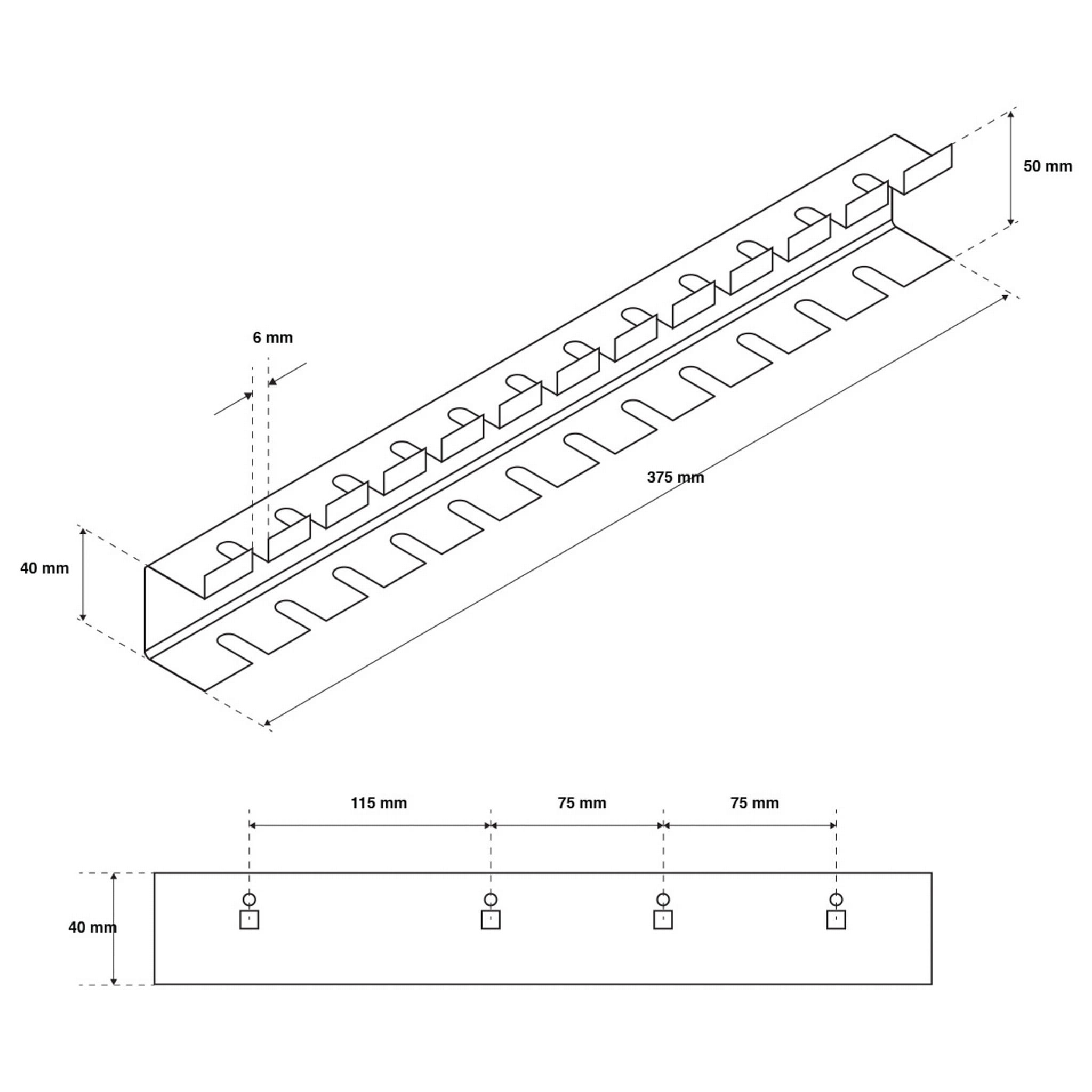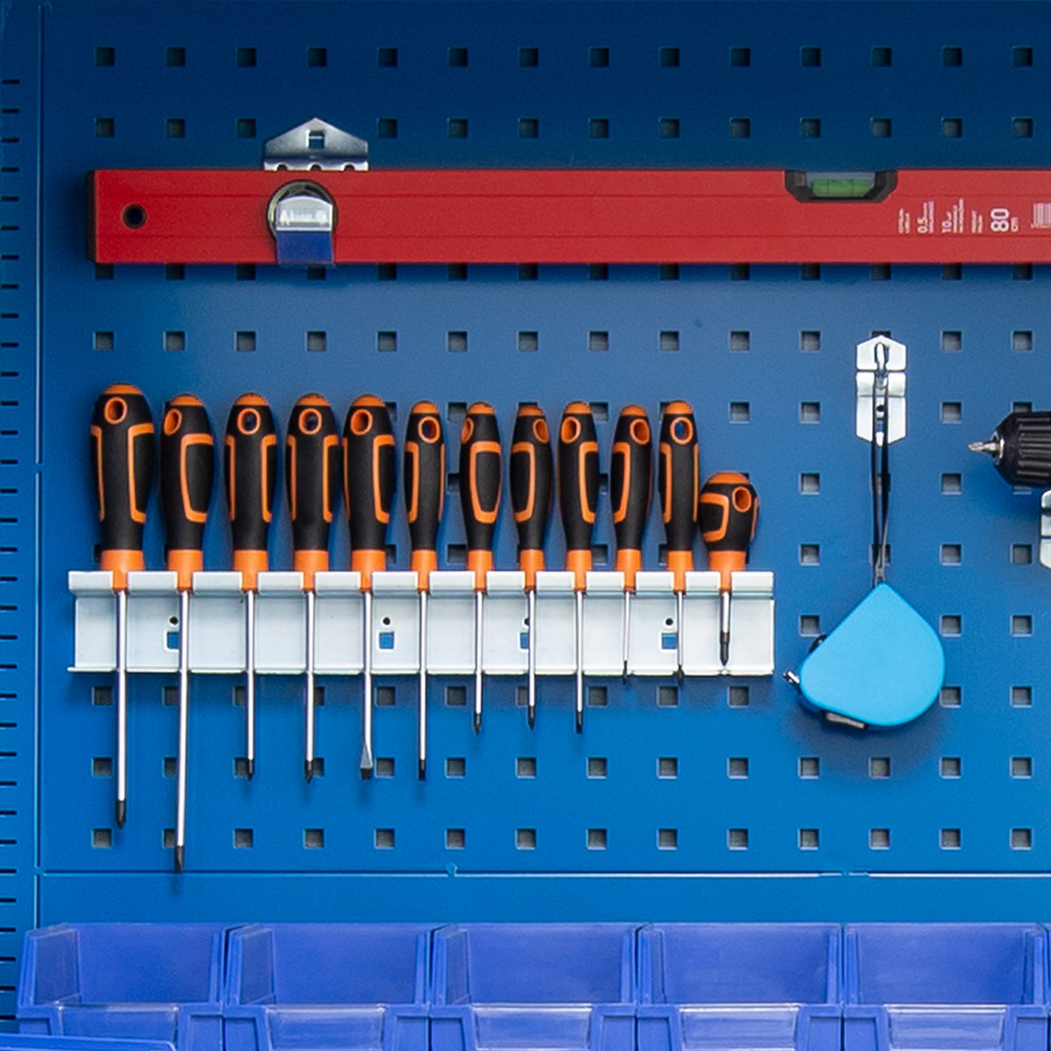 Dostosuj wnętrze szafy warsztatowej do własnych potrzeb i zapewnij sobie komfort codziennej pracy. Praktyczny uchwyt pozwoli Ci przechować dwanaście wkrętaków w jednym miejscu, dzięki czemu zawsze będziesz mieć je pod ręką i unikniesz poszukiwań odpowiedniego typu. Wykonanie z ocynkowanej stali zapewnia uchwytowi wytrzymałość i odporność na korozję. Może zostać zawieszony na perforowanych powierzchniach ścianek warsztatowych BRUNO, DAREK oraz SZYMON.