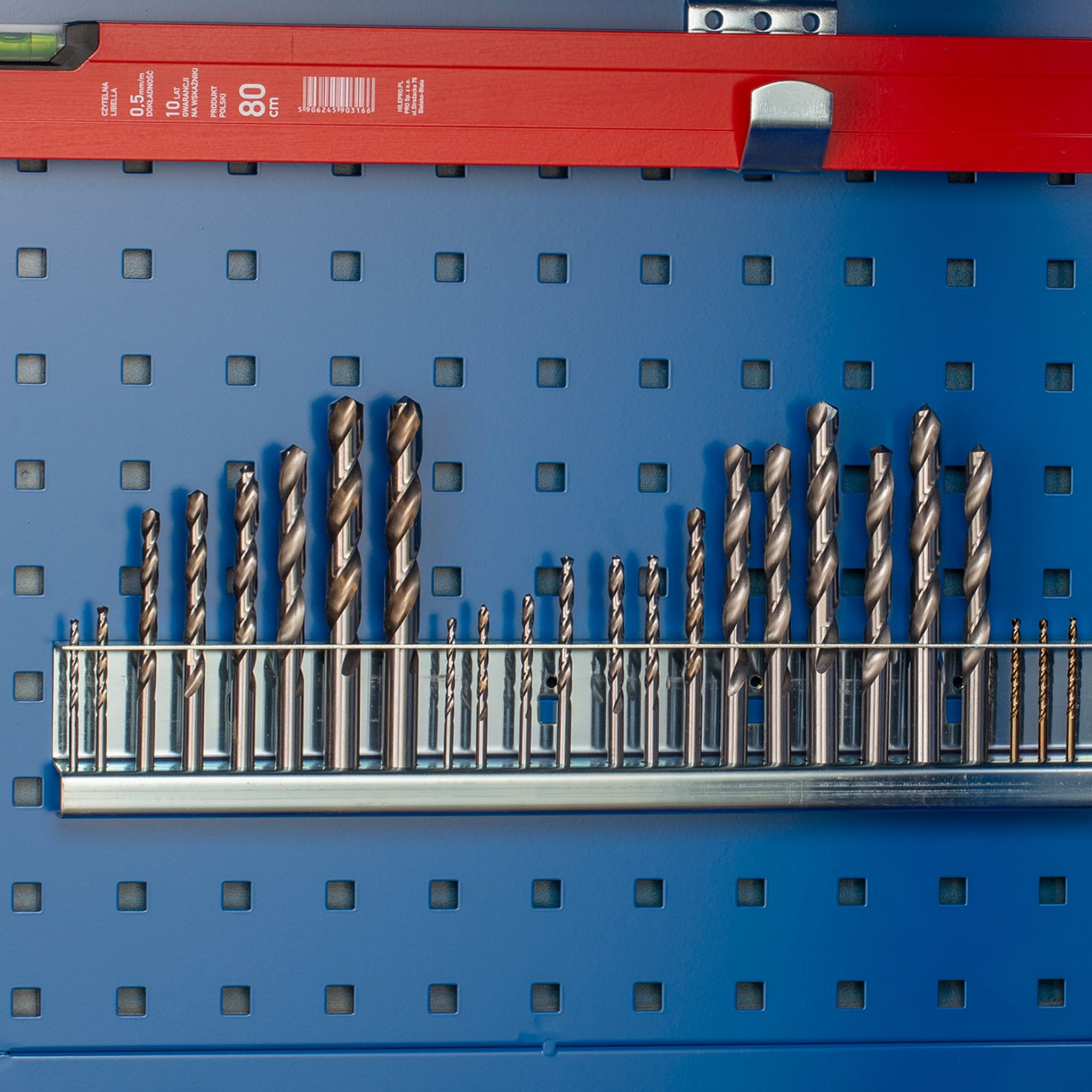 Z tym poręcznym uchwytem przechowywanie wierteł czy akcesoriów o podobnym kształcie stanie się praktyczne jak nigdy dotąd. Może zostać zawieszony w dowolnym miejscu perforowanej ścianki w szafach warsztatowych BRUNO, DAREK i SZYMON. Pozwala dopasować wnętrze mebla do własnych potrzeb i sprawi, że utrzymanie porządku w miejscu pracy będzie wyjątkowo łatwe i wygodne. Uchwyt powstał z ocynkowanej stali, jest więc wytrzymały i odporny na korozję.