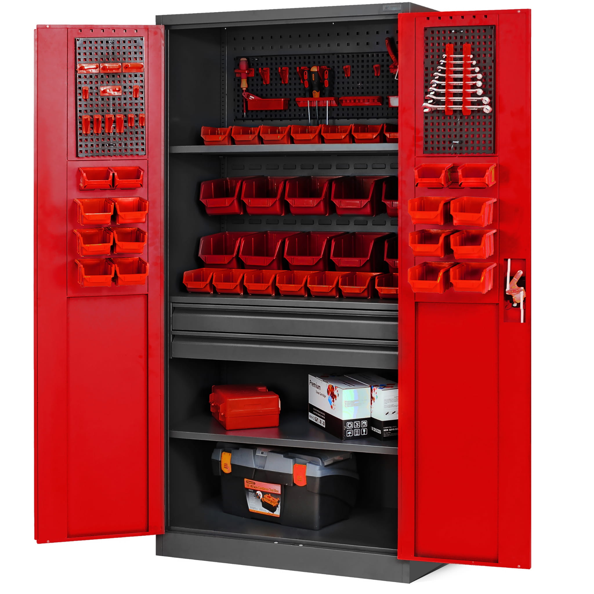 Warsztatowo-narzędziowa szafa metalowa SZYMON antracytowo-czerwona