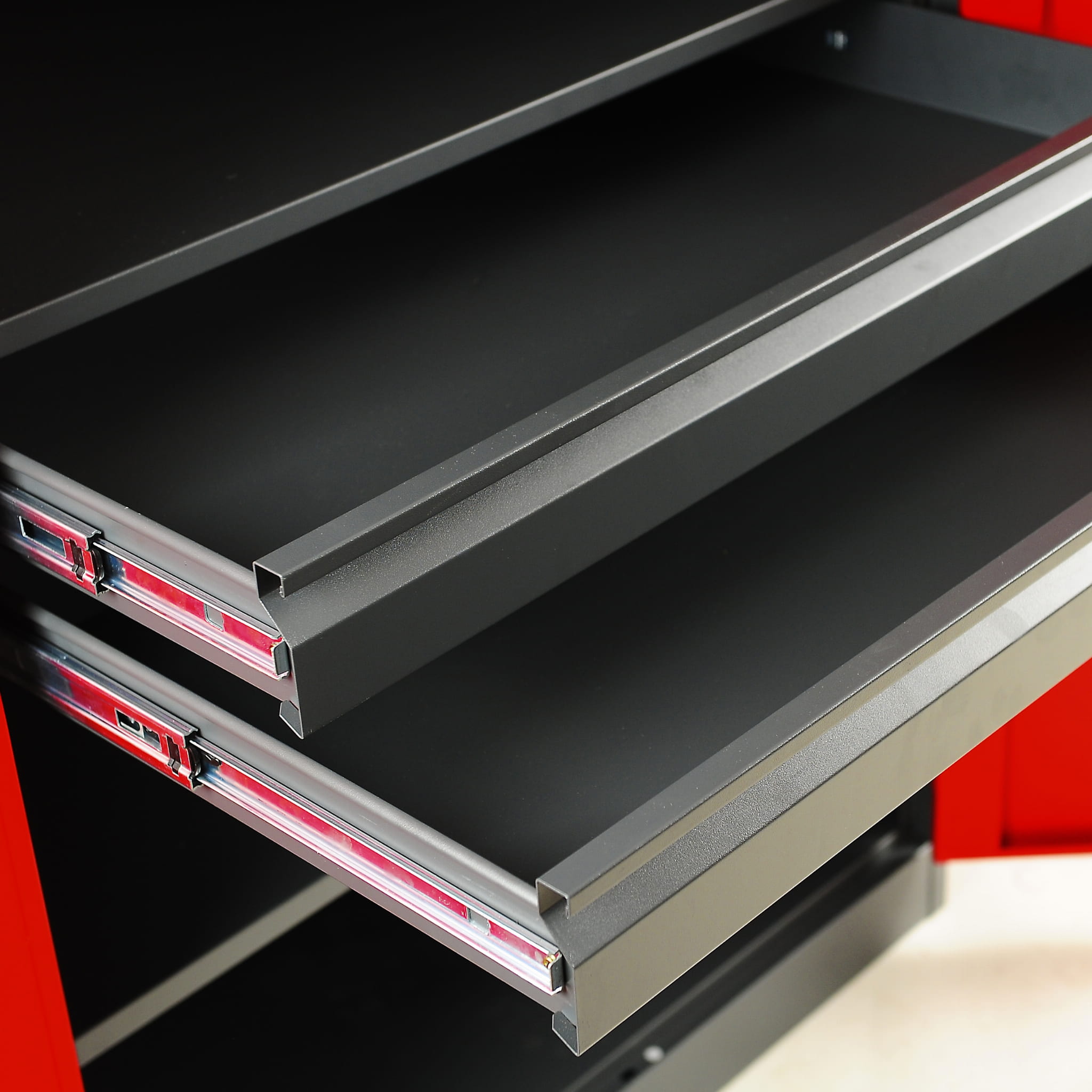 Szuflady na prowadnicach - 2 szuflady umożliwiają szybki dostęp do zawartości, każda z maksymalnym udźwigiem 40 kg.