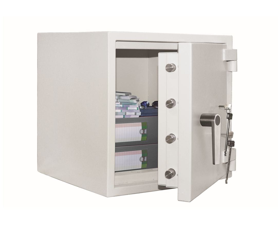 Sejf antywłamaniowy Banker M 55 KL w IV klasie odporności (PN-EN 1143-1), potwierdzonej certyfikatem ECB-S. Wersja z dwoma zamkami kluczowymi.