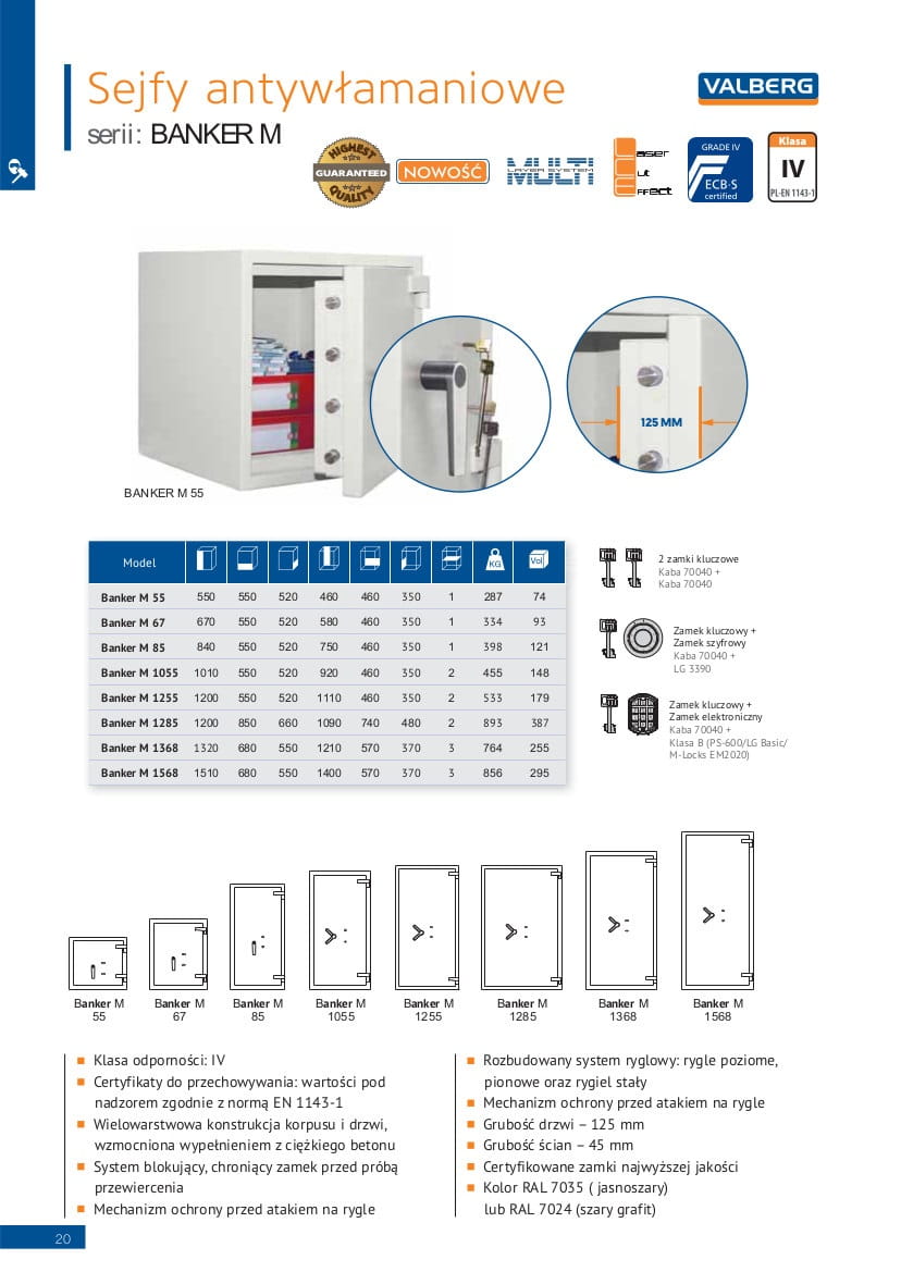 Sejf Banker M 55 KL Valberg (kl. IV) - zamki kluczowe