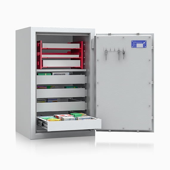 Seria sejfów z szufladami do przechowywania rzeczy wartościowych – safe4BTM - w I klasie odporności na włamanie ECBS.
