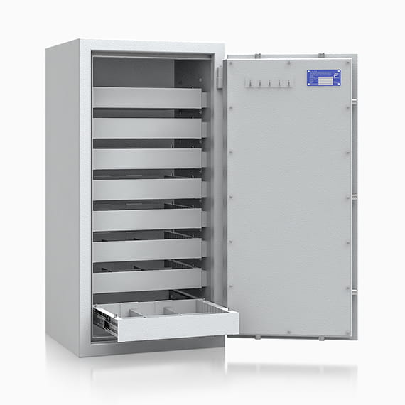 Seria sejfów z szufladami do przechowywania rzeczy wartościowych – safe4BTM - w I klasie odporności na włamanie ECBS.