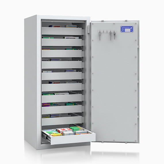 Seria sejfów z szufladami do przechowywania rzeczy wartościowych – safe4BTM - w I klasie odporności na włamanie ECBS.