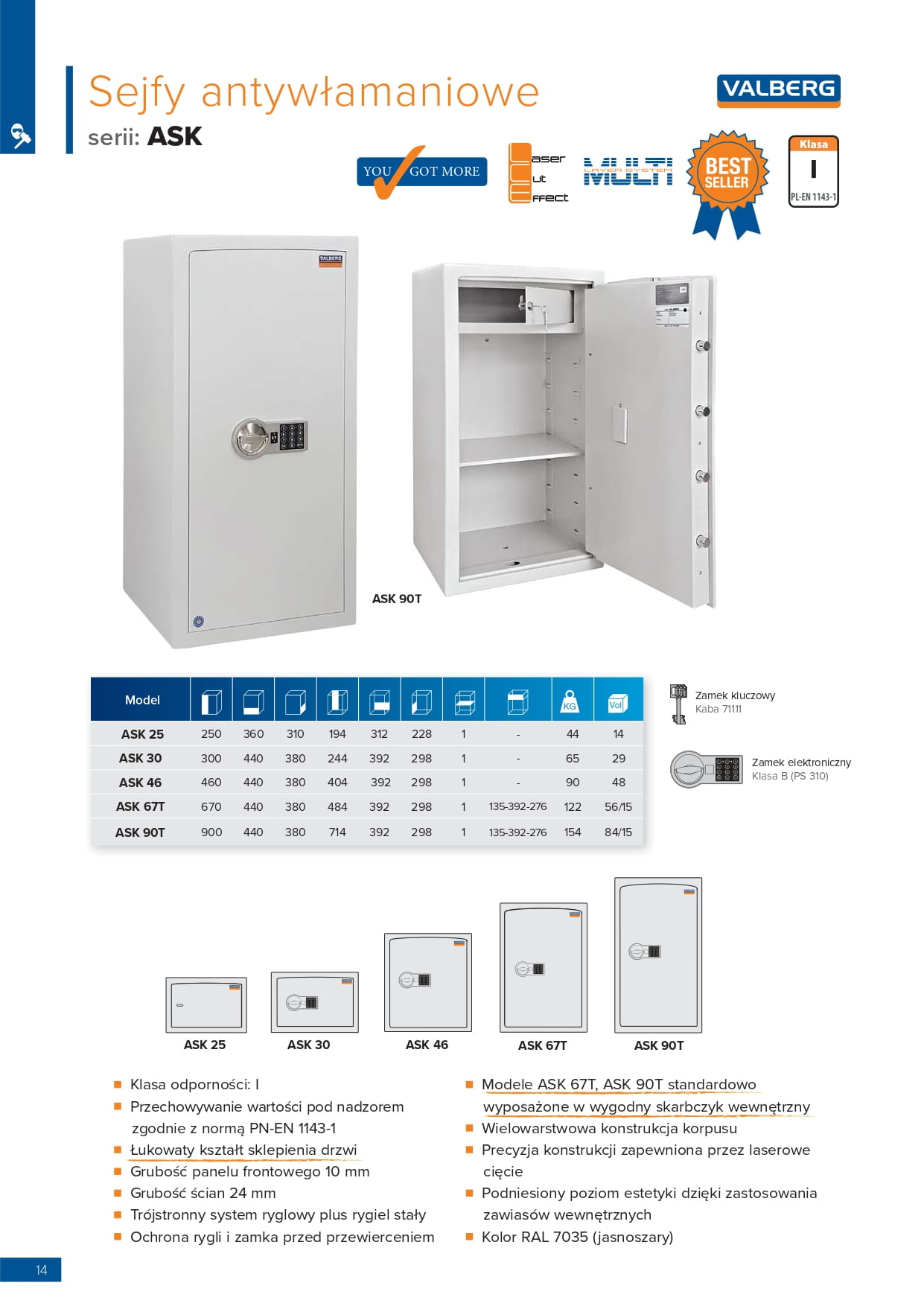 Sejf ASK 90T antywłamaniowy klasa I Valberg