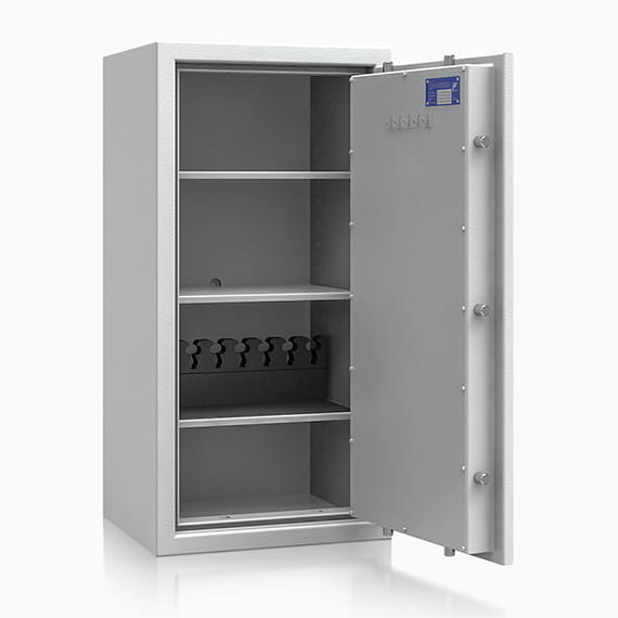 Przestawne półki umożliwiają samodzielne konfigurowanie wnętrza sejfu, który dzięki I klasie odporności na włamanie może być przeznaczony również