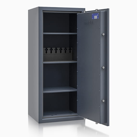 Przestawne półki umożliwiają samodzielne konfigurowanie wnętrza sejfu, który dzięki I klasie odporności na włamanie może być przeznaczony również