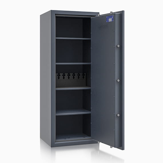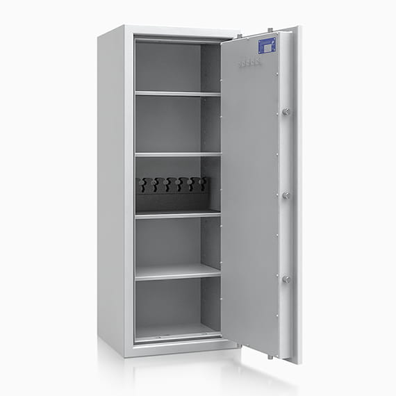 Przestawne półki umożliwiają samodzielne konfigurowanie wnętrza sejfu, który dzięki I klasie odporności na włamanie może być przeznaczony również