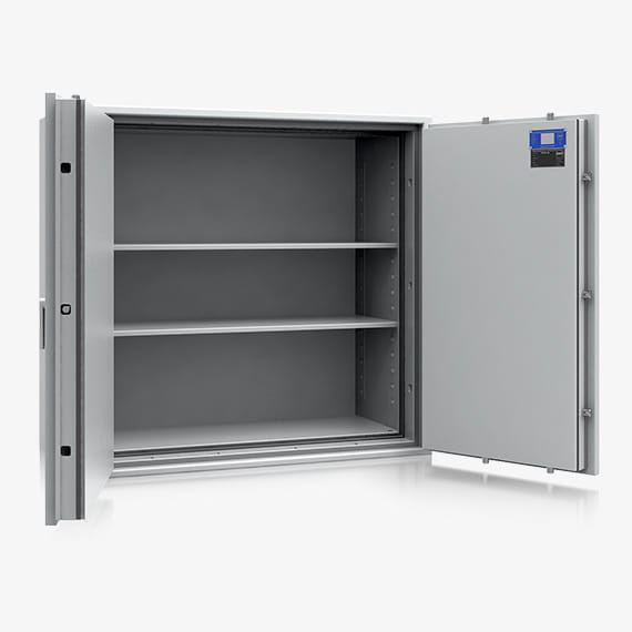 Seria Leverkusen Office – dwudrzwiowe sejfy o wyjątkowej pojemności ze specjalnym systemem uszczelek i wypełnień gwarantujących odporność przeciwogniową S60P. Polecany do przechowywania dokumentów, segregatorów, ale także wartościowych przedmiotów, broni itp.