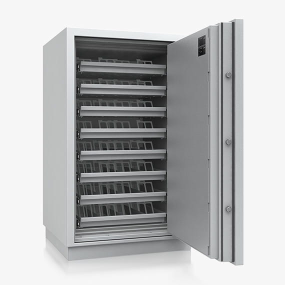 Seria Kopenhagen - sejfy do przechowywania nośników danych ze specjalnym systemem uszczelek i wypełnień gwarantujących odporność przeciwogniową S 120 DIS.