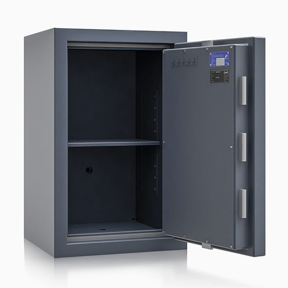 Sejfy posiadają podwójny mechanizm zabezpieczający jakim jest dodatkowa szklana płyta, która w przypadku próby włamania aktywuje ryglujące zabezpieczenia.
