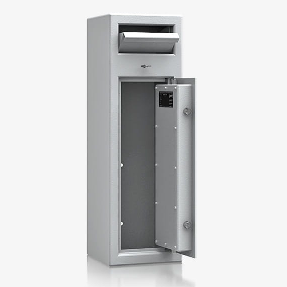 Wrzutnia zamykana certyfikowanym zamkiem kluczowym.
