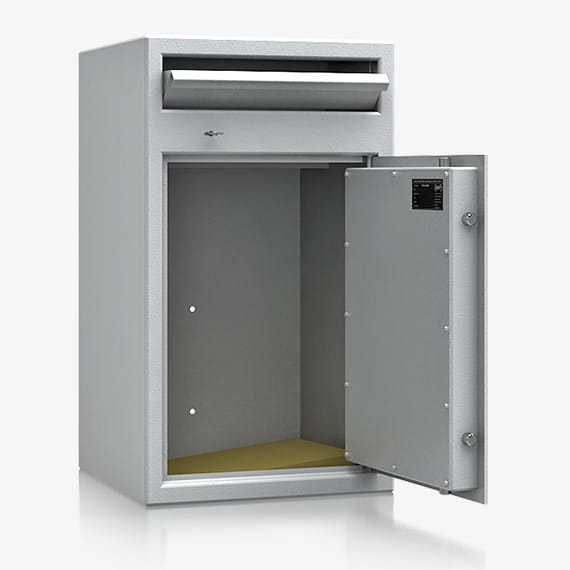 Wrzutnia zamykana certyfikowanym zamkiem kluczowym.