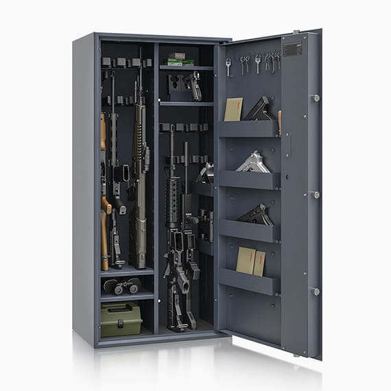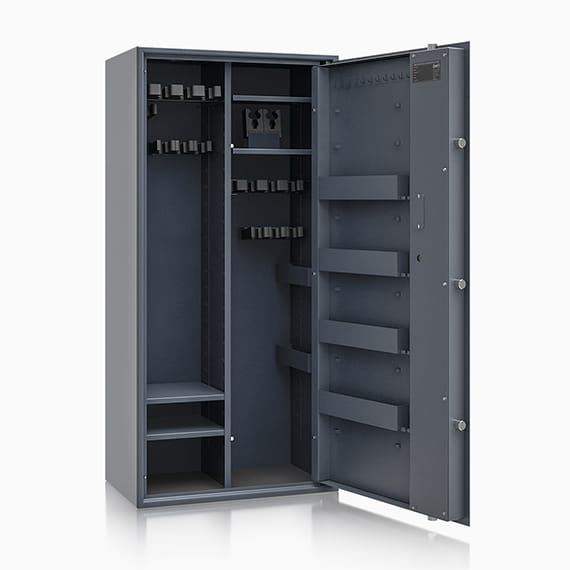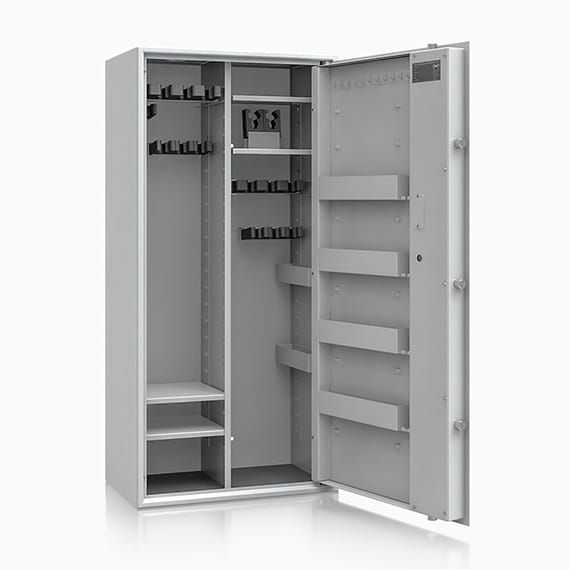Poprzez możliwość przestawiania na wysokości półek jak i uchwytów na broń – można dowolnie spersonalizować wnętrze umożliwiając dogodne ustawienie broni o różnej wysokości.