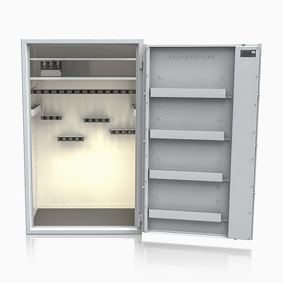 W zależności od modelu - szafy Siegen Super posiadają indywidulane wyposażenie pozwalające na dobranie modelu według własnych potrzeb. Każda z szaf wyposażona jest w piankowe dywaniki na dnie sejfu.