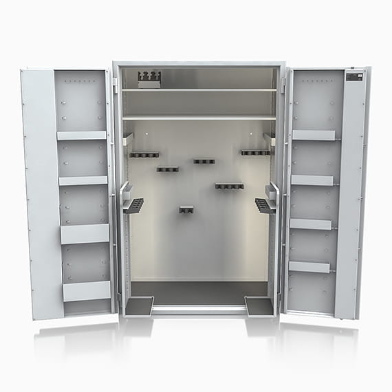 W zależności od modelu - szafy Siegen Super posiadają indywidulane wyposażenie pozwalające na dobranie modelu według własnych potrzeb. Każda z szaf wyposażona jest w piankowe dywaniki na dnie sejfu.