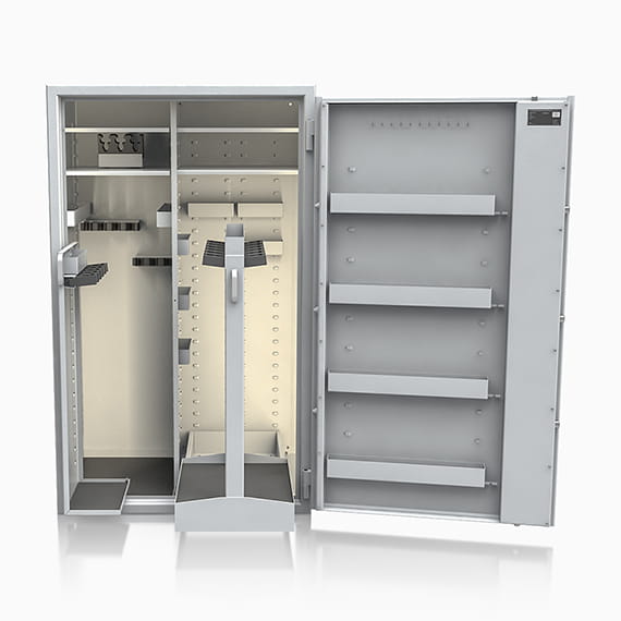 W zależności od modelu - szafy Siegen Super Kombi posiadają indywidulane wyposażenie pozwalające na dobranie modelu według własnych potrzeb. Każda z szaf wyposażona jest w piankowe dywaniki na dnie sejfu.