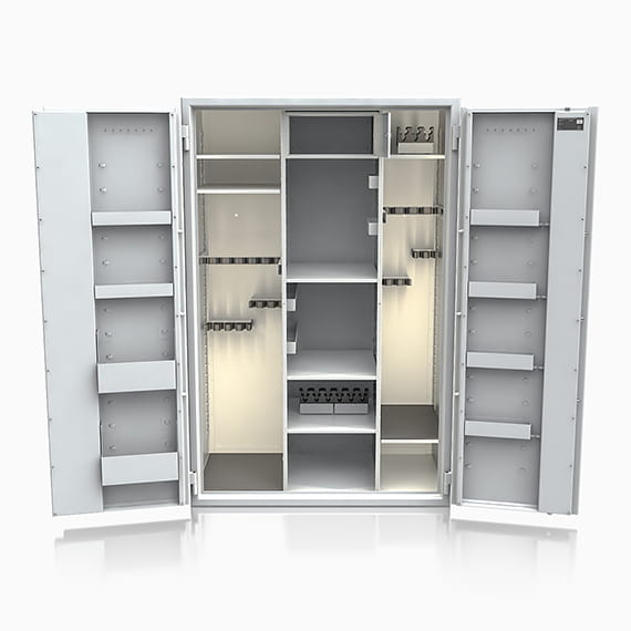 W zależności od modelu - szafy Siegen Super Kombi posiadają indywidulane wyposażenie pozwalające na dobranie modelu według własnych potrzeb. Każda z szaf wyposażona jest w piankowe dywaniki na dnie sejfu.