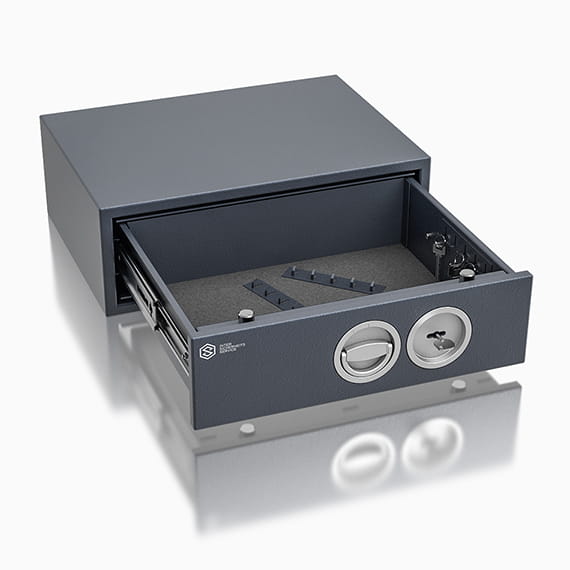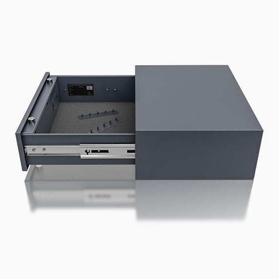 Szuflada w standardzie wyłożona jest wykładziną zabezpieczającą deponowaną broń przed porysowaniami. W wybranych modelach w celu zwiększenia funkcjonalności i wygody użytkowania - szuflada została wyposażona w piankowe uchwyty na broń.