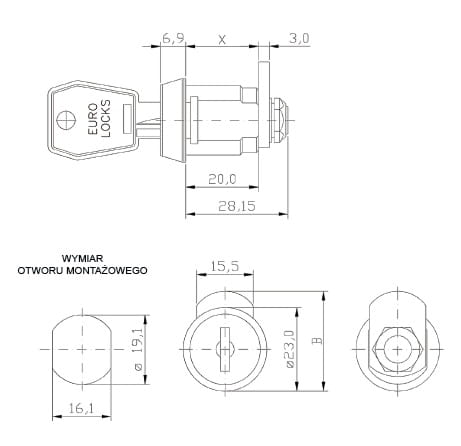 Zamek eurolock do mebli metalowych (np. szafy SUM W)
