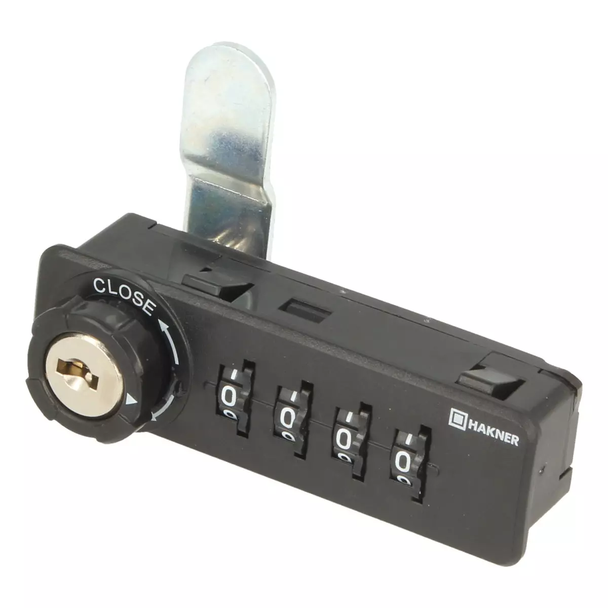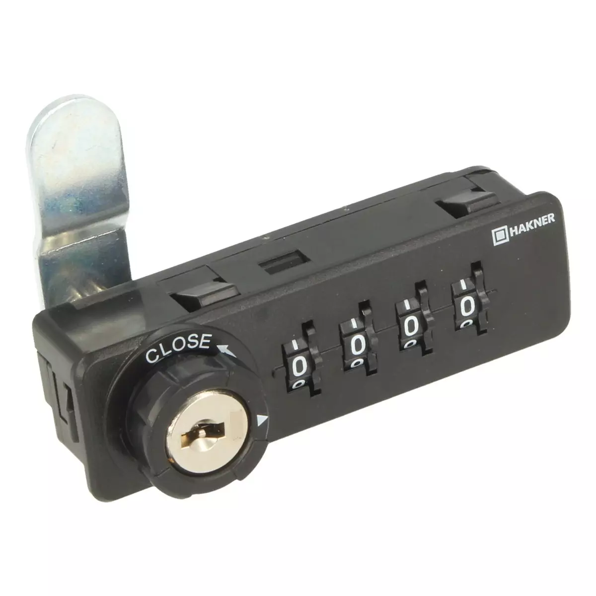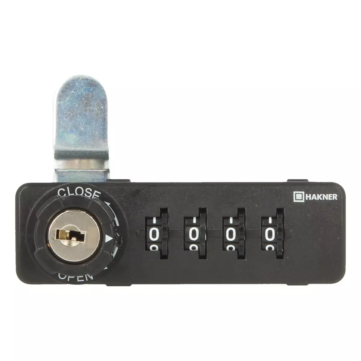 Zamek szyfrowy GRAB w wersji prawej marki HAKNER, to wysokiej jakości mechaniczny zamek meblowy. Zamek montowany jest w pozycji poziomej i posiada funkcję czterocyfrowego kodu. Obsługa zamka jest prosta i intuicyjna, Zamek może pracować w trybie publicznym, który w pozycji otwartej zamka pozwala ustawić dowolny kod użytkownika. Po zamknięciu zamek otwiera się wyłącznie tym samym kodem. Po ponownym otwarciu istnieje możliwość ustawienia innego kodu. Ustawienie zamka w tryb prywatny oznacza że zamek pracuję w jednym kodzie. Zamek posiada opcję klucza, którym możemy przywrócić utracony kod.